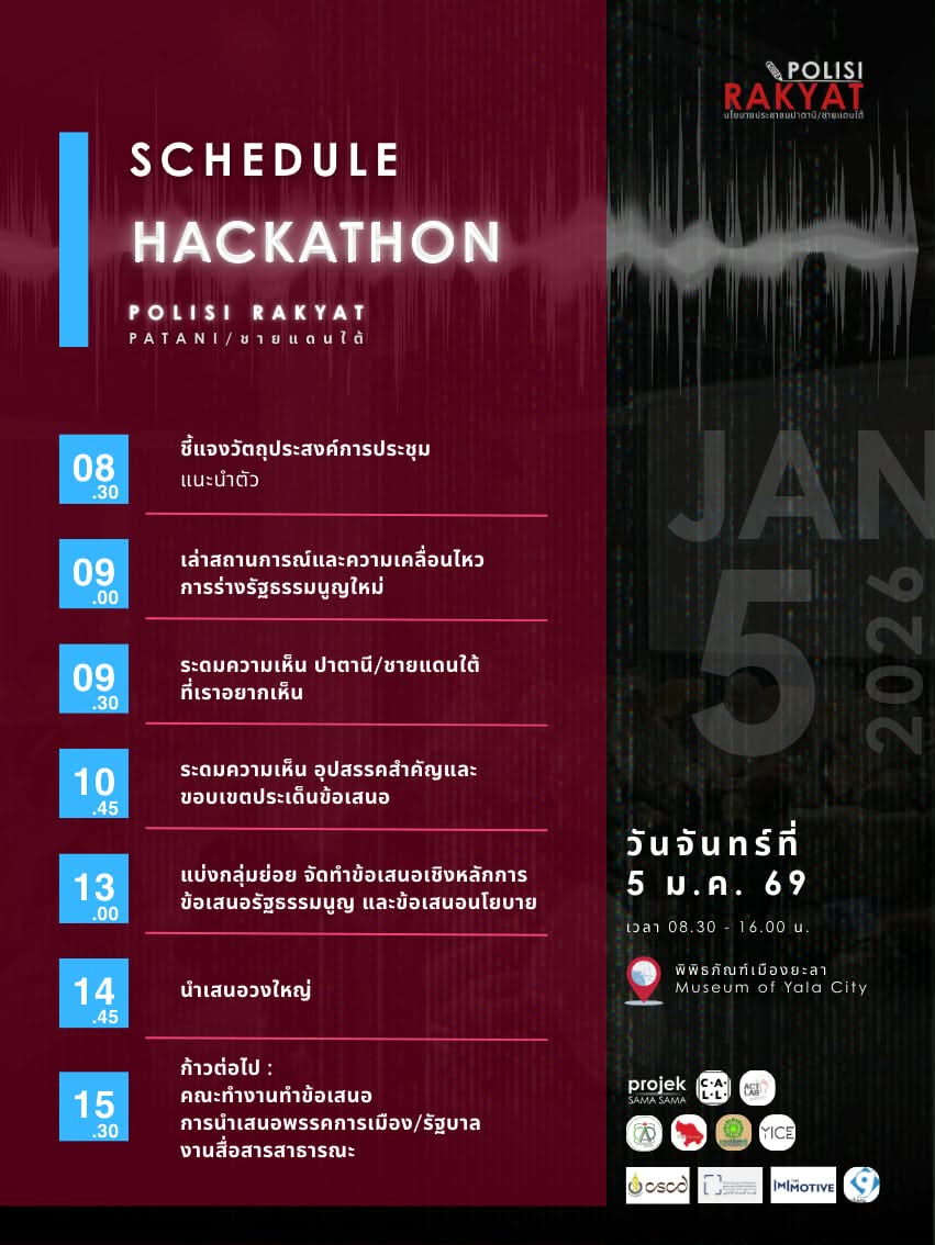 projek Sama Sama และเครือข่ายร่วมจัด ขอเชิญคุณมารวมพลัง Hack ไอเดีย เปลี่ยนปัญหาให้เป็น "พิมพ์เขียวนโยบาย" (POLISI RAKYAT) ที่พรรคการเมืองต้องฟัง และข้อเสนอการแก้ไขรัฐธรรมนูญ ปี 60 ภายใต้กิจกรรม