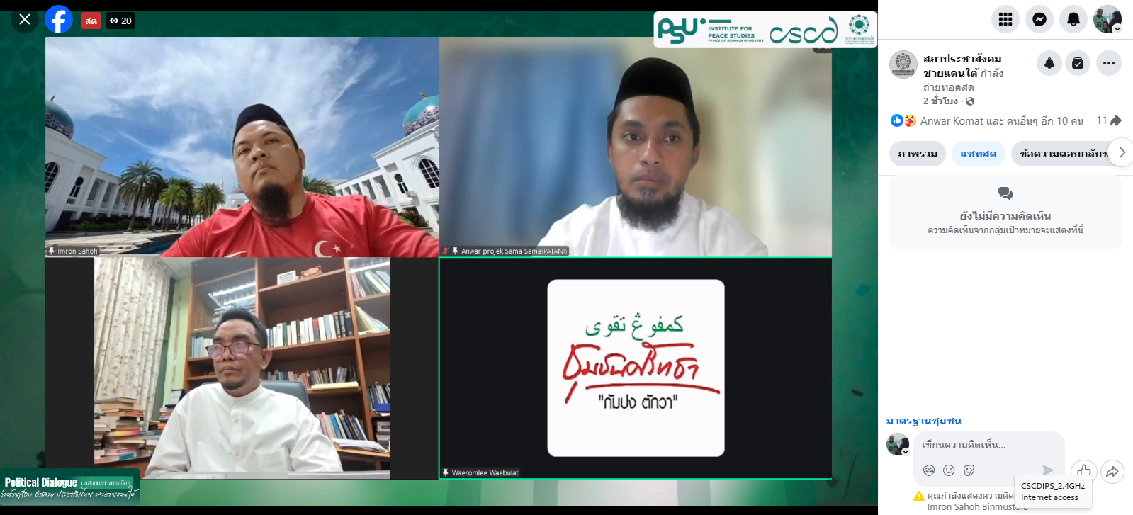 CSCD ร่วมกับสภาประชาสังคมฯ จัดวงสนทนาทางการเมืองว่าด้วยเรื่อง อิสลาม ประชาธิปไตย และชายแดนใต้