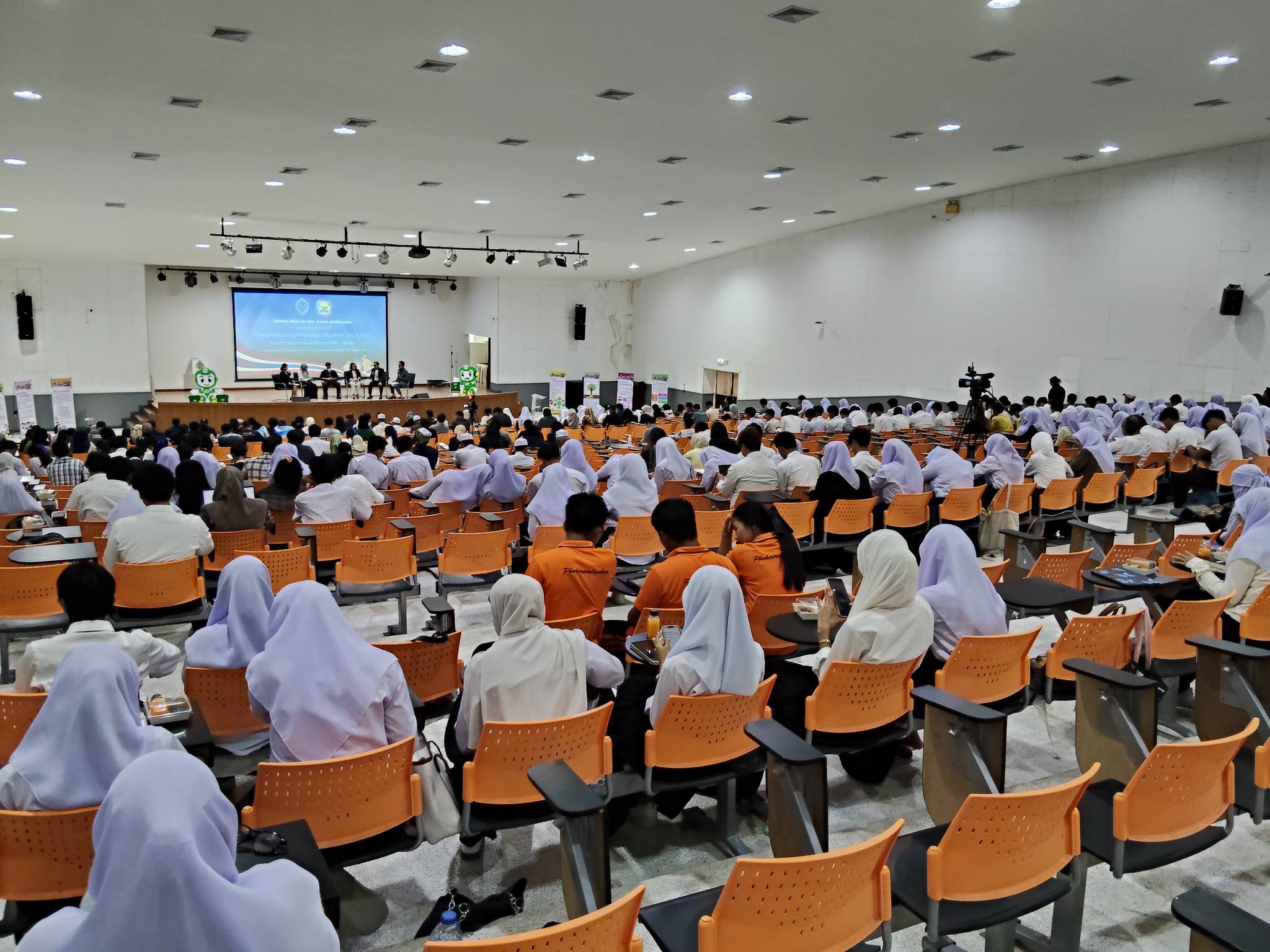 เมื่อวันที่ 28 มกราคม 2569 ที่ผ่านมา ณ หอประชุมห้อง 900 ชั้น 2 คณะวิทยาการสื่อสาร มหาวิทยาลัยสงขลานครินทร์ วิทยาเขตปัตตานี จังหวัดปัตตานีได้กิจกรรมเสวนาในหัวข้อ “กำหนดใจตนเองด้วยการเลือกตั้ง 28 มกราฯ เรามาเจอกัน” โดยมี นางพาตีเมาะ สะดียามู ผู้ว่าราชการจังหวัดปัตตานี เป็นประธานเปิดกิจกรรมเสวนา พร้อมกิจกรรมพบปะสื่อมวลชนท้องถิ่น ประจำปี พ.ศ. 2569 โดยมี หัวหน้าส่วนราชการ คณะผู้บริหารมหาวิทยาลัยสงขลานครินทร์ วิทยาเขตปัตตานี สื่อมวลชนท้องถิ่น ผู้แทนผู้สมัครรับเลือกตั้งสมาชิกสภาผู้แทนราษฎรแบบแบ่งเขตเลือกตั้ง ผู้สนับสนุน ตลอดจนนักเรียน นักศึกษา เข้าร่วมกิจกรรมกว่า 900 คน