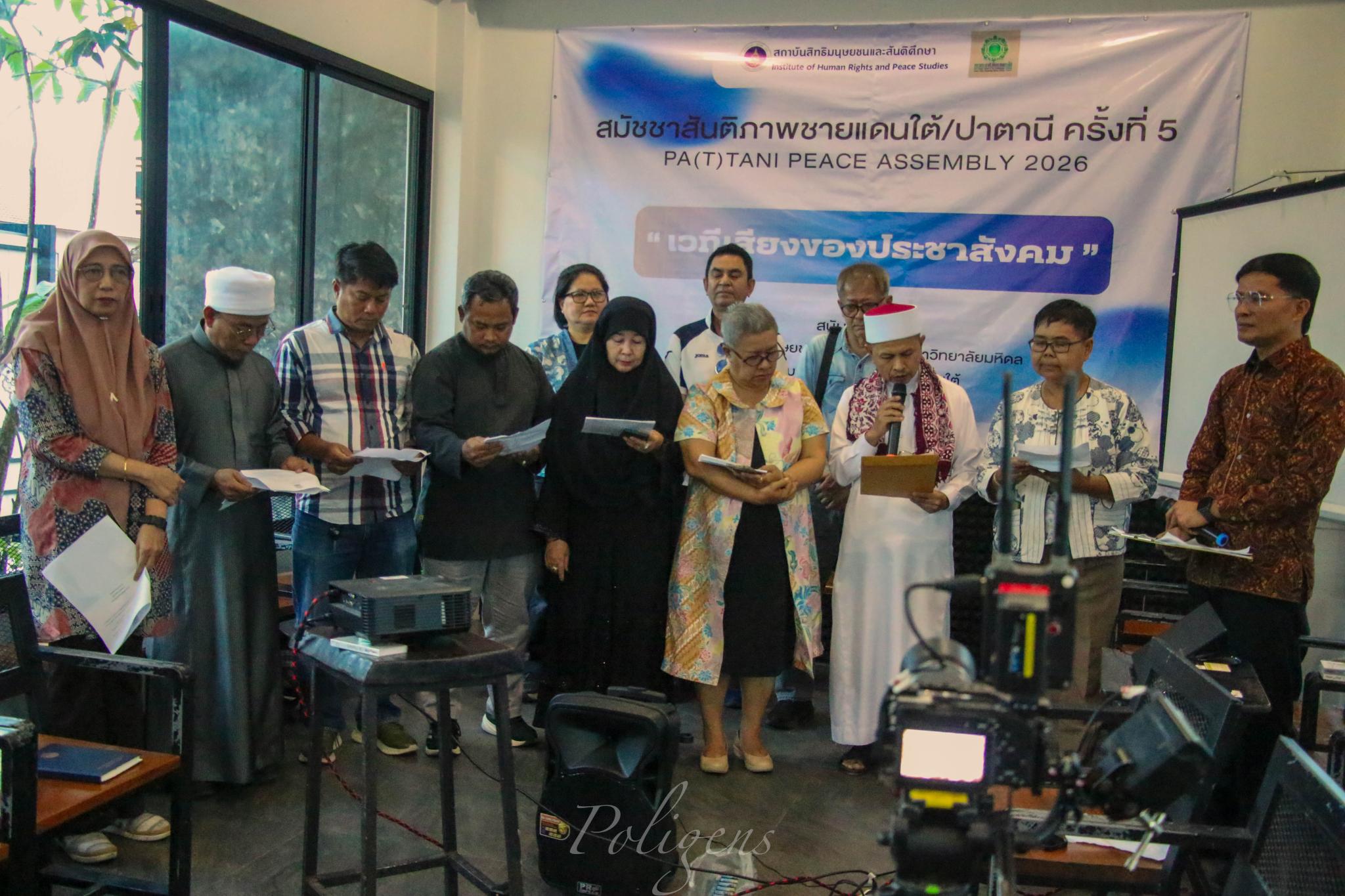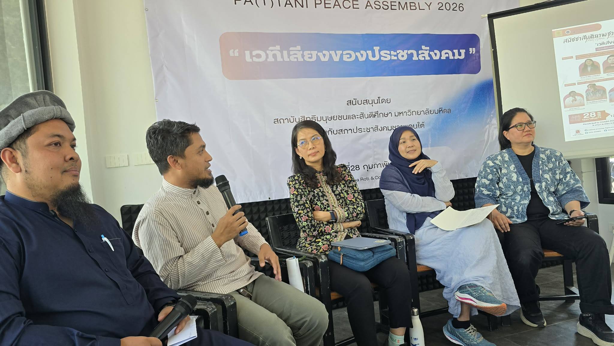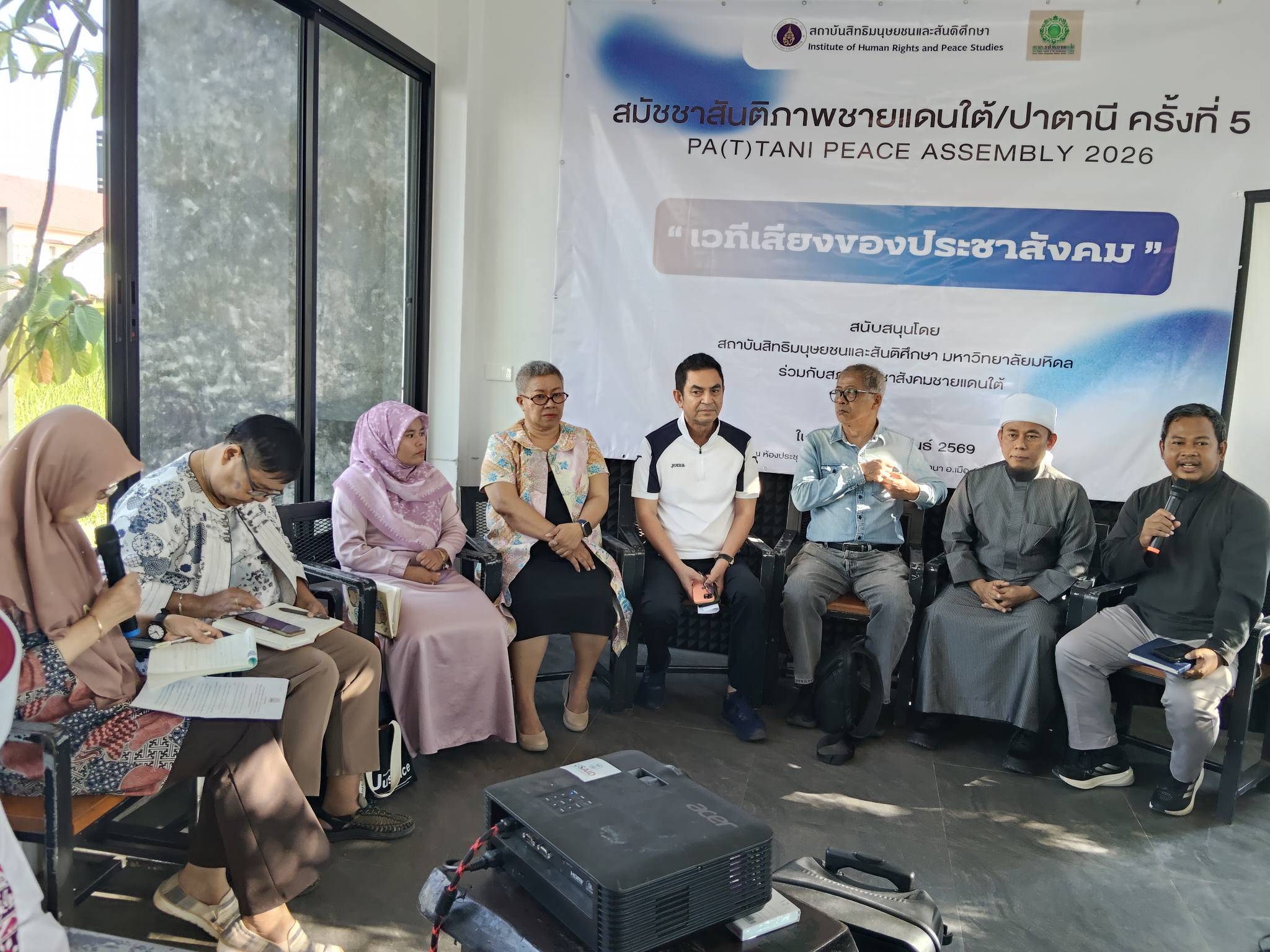 เมื่อวันเสาร์ที่ 28 กุมภาพันธ์ 2569 ที่ผ่านมา ณ ห้องประชุมร้าน Chaba Roti & Coffee ต.บานา อ.เมือง จ.ปัตตานี สถาบันสิทธิมนุษยชนและสันติศึกษา มหาวิทยาลัยมหิดล ร่วมกับ สภาประชาสังคมชายแดนใต้ ได้สมัชชาสันติภาพชายแดนใต้/ปาตานี ครั้งที่ 5 { Pa(t)tani Peace Assembly 2026 } “เวทีเสียงของประชาสังคม : เนื่องในโอกาสครบรอบการพูดคุยสันติภาพชายแดนใต้/ปาตานี ปีที่ 13 (ตั้งแต่ 28 ก.พ. 2556)