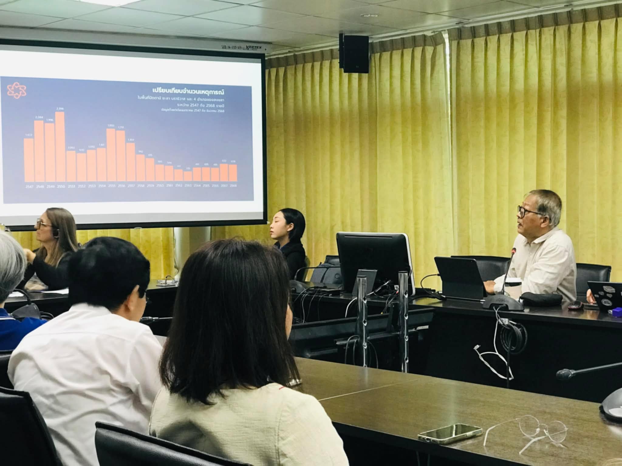 ในการนี้ ตัวแทนจากสถานวิจัยฯ นำโดย ผศ.ดร.ศรีสมภพ จิตร์ภิรมย์ศรี ได้นำเสนอภาพรวมสถานการณ์ความไม่สงบและความคืบหน้าของกระบวนการพูดคุยสันติภาพในจังหวัดชายแดนภาคใต้ ขณะเดียวกัน อาจารย์ฟารีดา ปันจอร์ พร้อมคณะ ได้นำเสนอความคืบหน้าการดำเนินโครงการวิจัยเรื่อง “ความเสมอภาคของคนพิการในจังหวัดชายแดนภาคใต้” ภายใต้โครงการ Movement on Disability Equality in Thailand’s Southern Border Provinces (MODE-SBP) ซึ่งได้รับการสนับสนุนจาก Minority Rights Group (MRG) และสหภาพยุโรป (EU)